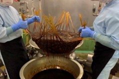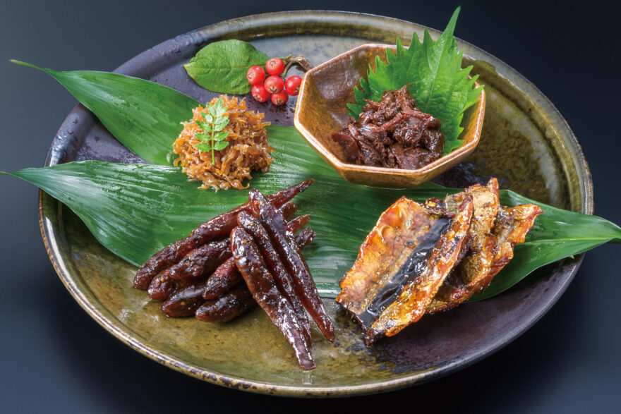 この商品の味わいを支えているのが、「炙り」と「炊き上げ」を重ねた二段仕立ての製法。サンマは、セミドライに仕立てると味が凝縮しやすいので、「炙り」の工程で香ばしさを引き出しつつ、秘伝のたれで炊き上げ、竹籠を用いた伝統製法のもと職人が色や粘度を見極めながら味の入り方を細かく調整し、バランスの取れた甘辛さに整えています。さらに、「炊き上げ」の工程では調味料を事前に混合せず、水から順に加えるため、素材の味とたれの旨みが中心まで染み込みやすい点も特長です。